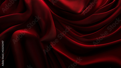 Luxurious deep red fabric with flowing folds and velvety texture, creating an elegant and opulent visual effect. The rich color and soft waves enhance the sense of depth and movement, emphasizing the