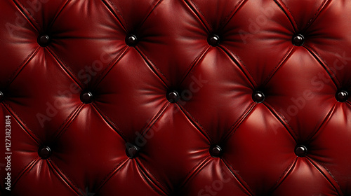 Luxurious deep red leather upholstery with a classic tufted design, featuring evenly spaced buttons and a rich, glossy texture.