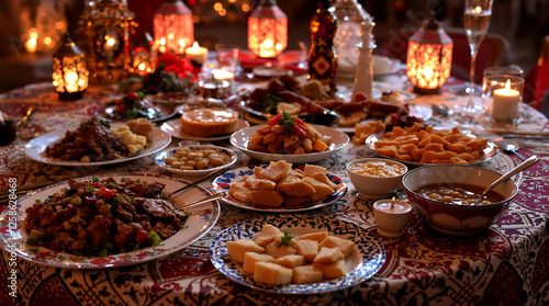 Luxurious Festive Dinner Table with Traditional Dishes and Elegant Decor