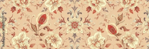 Luxurious floral pattern featuring intricate royal motifs in a seamless design, seamless, classic