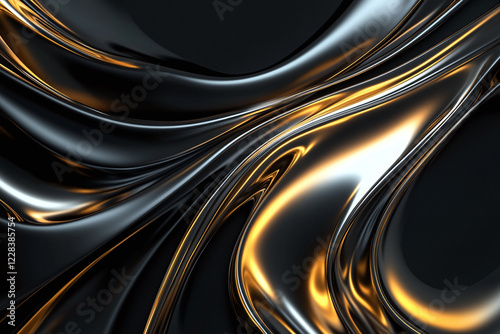 Luxurious Gold and Black Silk Fabric with Elegant Satin Folds, Shimmering Metallic Texture, and Premium Design for Glamorous Backdrops