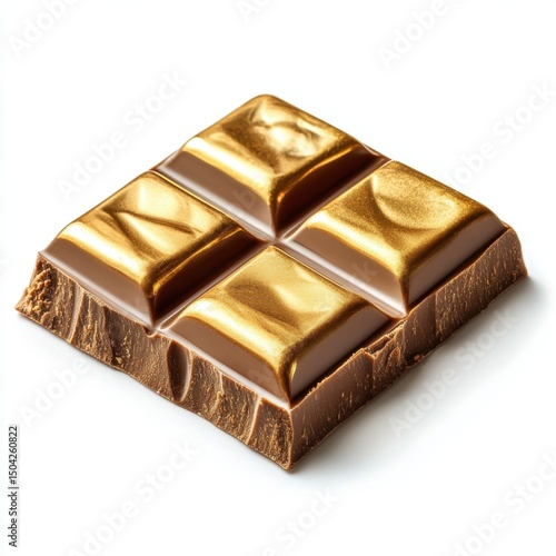 Luxurious golden chocolate bar with shiny reflective surface and detailed textured edible design showcasing rich gourmet confectionery treat for induence