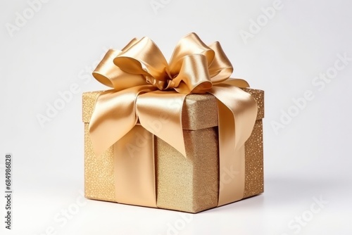 Luxurious Golden Gift Box on White Background - Ideal for Valentine's Day