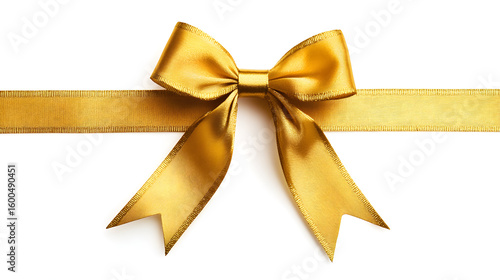 Luxurious golden ribbon bow with textured details isolated against a bright white backdrop.
