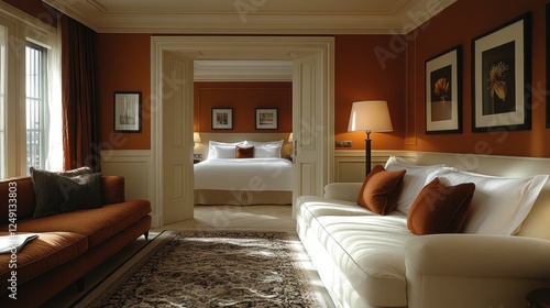 Luxurious Hotel Suite Interior Design: Elegant Living Room and Bedroom