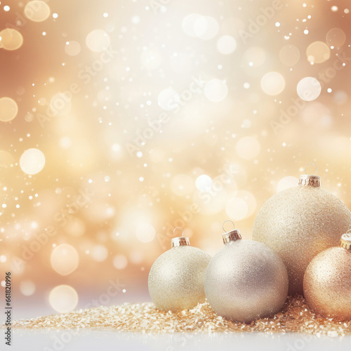 Luxurious, noble golden background with sparkling balls for Christmas. Elegant pastel tones for printing, Christmas cards, wallpaper, banners.