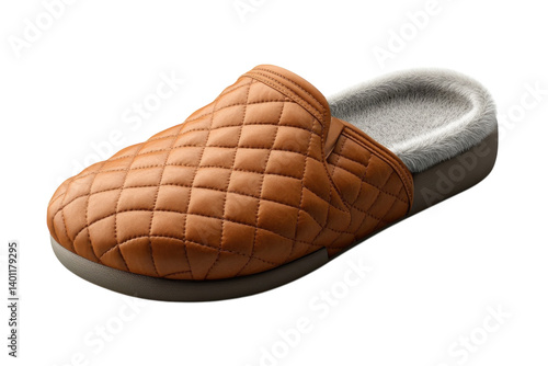 Luxurious quilted slipper tan leather cozy fleece lining perfect for on transparent background
