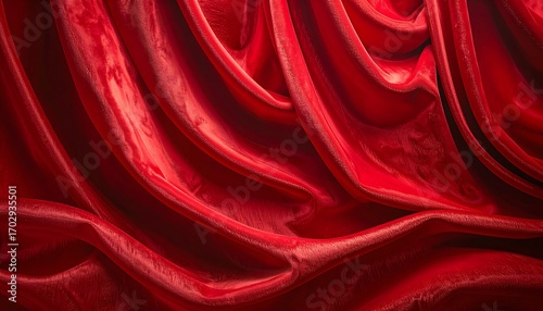 Luxurious Red Velvet Fabric Draped in Elegant Folds and Waves.