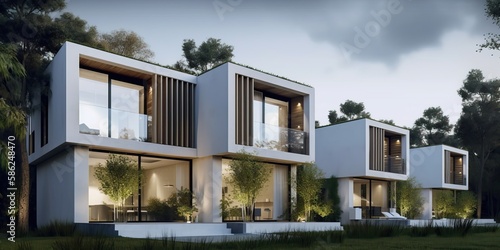 Luxurious residential development with pool, generative ai