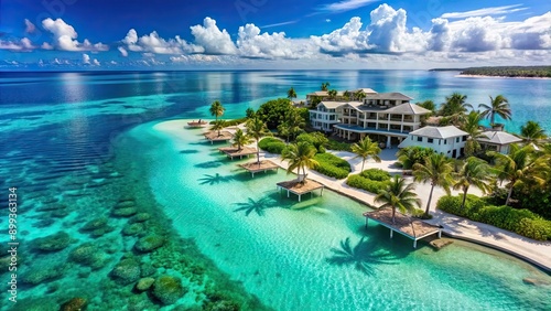 Luxurious resort surrounded by crystal-clear turquoise waters, luxury, travel, vacation, paradise, tropical, relaxation