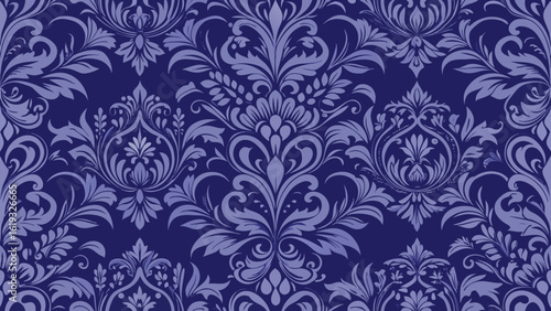 Luxurious seamless damask pattern in classic blue color palette, wallpaper, luxurious