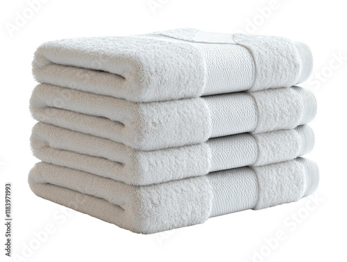 Luxurious soft fluffy white towels stacked neatly in a spa environment high fidelity elegant aesthetic isolated on transparent background png