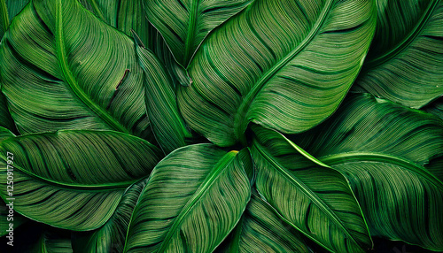 Luxurious tropical leaf texture with intricate abstract green patterns. Stunning nature