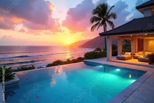 Luxurious villa holiday home with private pool and stunning ocean views Enjoy breathtaking sunsets and unwind in ultimate comfort Perfect for a relaxing getaway , design, serenity, outdoor space