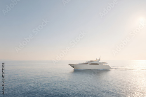luxurious yacht gliding smoothly on gentle waves under clear sky horizon