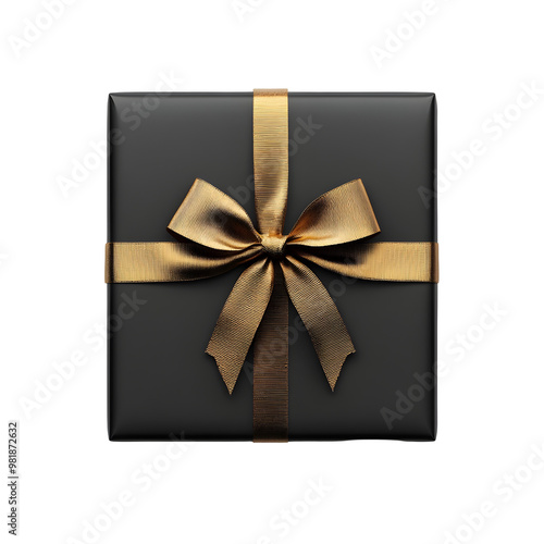 Luxury Black Gift Box with Gold-Embossed Ribbon on White Background