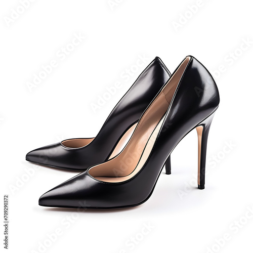 Luxury black high heel shoes on a white background