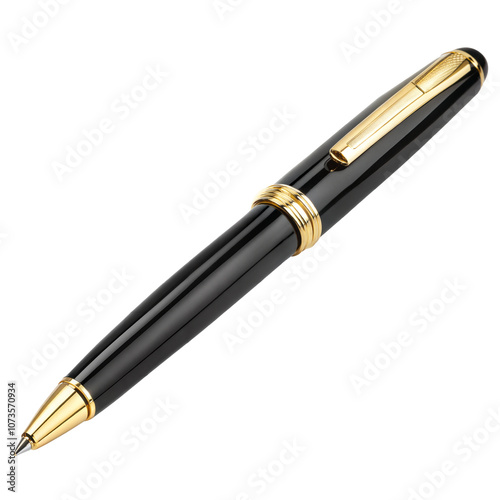 Luxury black pen with gold accents on a transparent or white isolated background.
