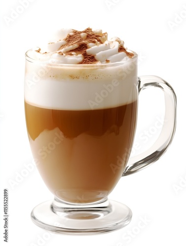 Luxury Cappuccino Toppped with Whipped Cinnamon in Clear Glass Mug Serving Premium Delight : Generative AI