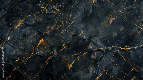 Luxury Dark Marble Texture with Deep Black and Gold Abstract Patterns