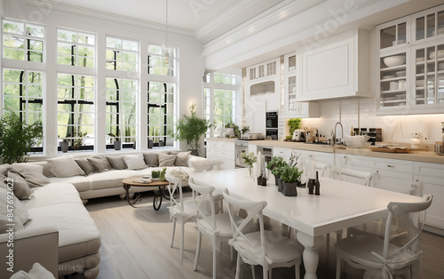 Luxury dining room in a classic style. 3d rendering