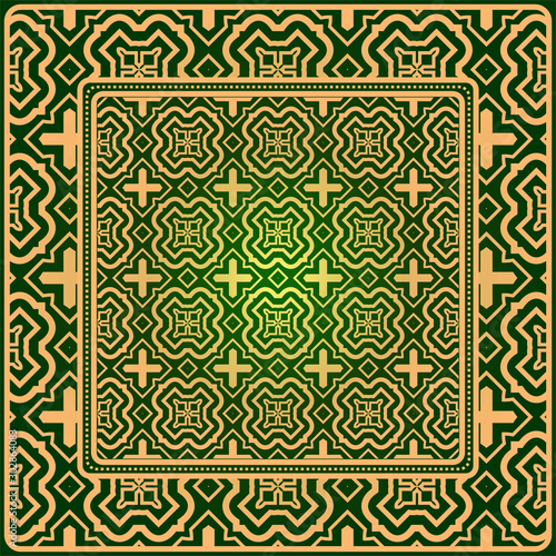Luxury Fashion Design Print With Geometric Pattern. Vector Illustration. For Modern Interior Design, Fashion Textile Print, Wallpaper. Green gold color