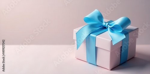 Luxury gift box, blue bow, light blue ribbon Perfect present , monochrome, luxury gift