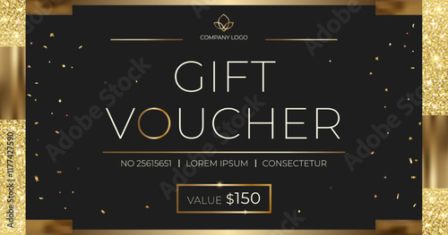 Luxury gift voucher. Elegant gift voucher with golden elements. Template for gift card, coupon. Promo or flyer offer