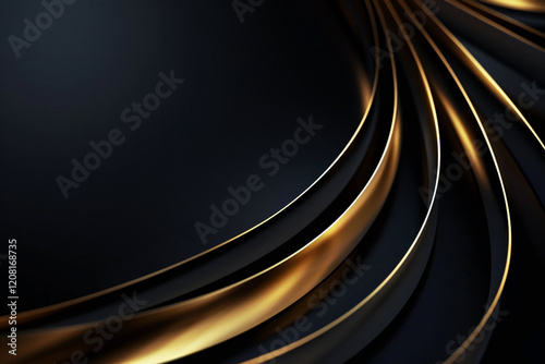 Luxury Gold Waves on Black Background with Sleek Metallic Highlights and Radiant Fluid Motion for Modern Abstract Elegance