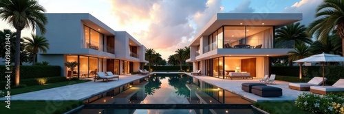 Luxury high-end residential complex completion, LED lighting, modern homes