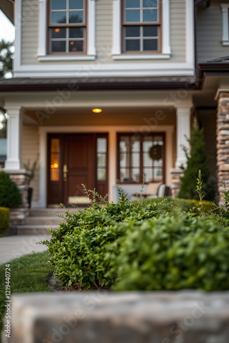 Luxury Home Exterior: Modern Architecture and Landscaping Design. A captivating view of a beautiful house with a well-maintained garden, showcasing modern architectural design and landscaping.
