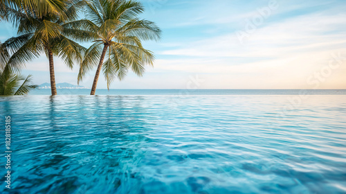 Luxury Infinity Pool Overlooking Tropical Ocean at Sunset