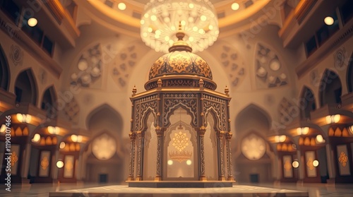 luxury Islamic mandala in sharp focus, positioned against a softly blurred bokeh background. The cinematic