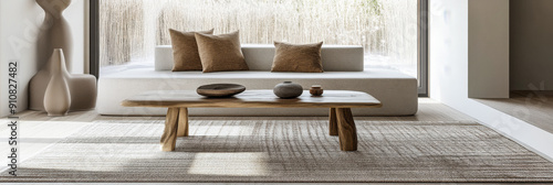Luxury living room interiors with elegant furniture and natural lighting. Luxurious realty interior design composition in neutral tones.