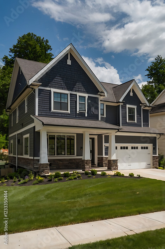 Luxury Modern Home Exterior: Dream House in the Suburbs. Gray Siding, Stone Accents & Landscaping