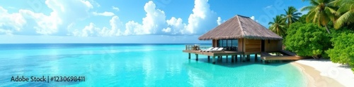 Luxury overwater bungalow, crystal clear lagoon , island, turquoise, scenic