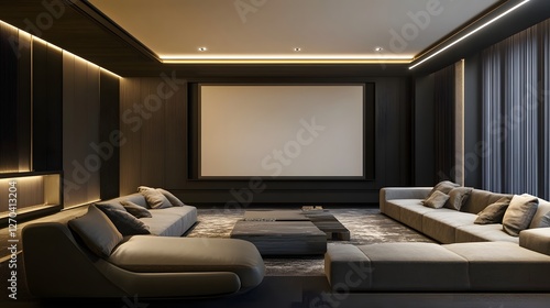 Luxury Penthouse Home Theater with Blank Projector Screen for High-End Entertainment Concept