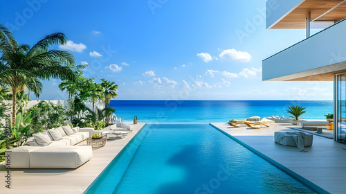Luxury Poolside Villa with Ocean View - 3D Illustration