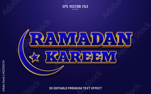 Luxury premium Ramadan stylish 3d text effect blue and golden template