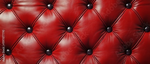 Luxury Red Leather Upholstery Texture: A Close-Up of Elegant Diamond-Patterned Red Leather with Dark Buttons