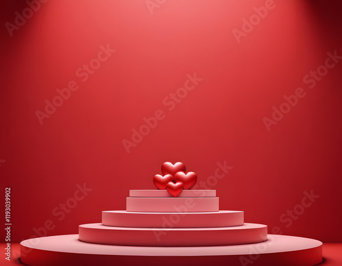 luxury Red podium background with copy space, Valentine's Day, symbols for love, 3d rendering with red background