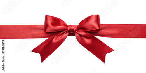 luxury red ribbon with tied bow on white background