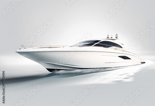 luxury speed boat vehicle yacht white, isolated white background