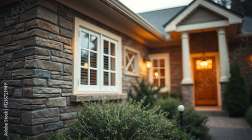 Luxury Stone House Exterior at Night: Real Estate Photography