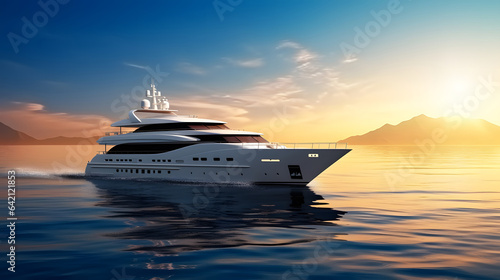 Luxury super yacht sailing in beautiful sea, during sunset