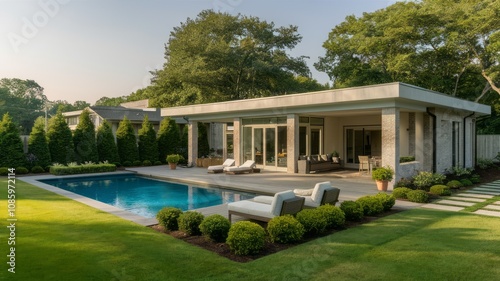 Luxury Villa Oasis: A luxurious villa with a sparkling swimming pool and beautifully landscaped grounds, perfect for relaxation and enjoyment.