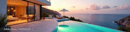 Luxury villa with private pool, sun loungers, and stunning ocean views Perfect for a relaxing getaway Enjoy breathtaking sunsets and outdoor living , sunset, vacation, turquoise water