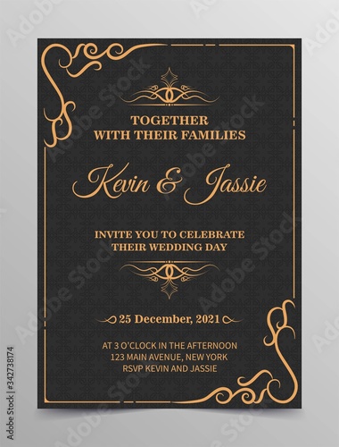 Luxury vintage golden vector invitation card template