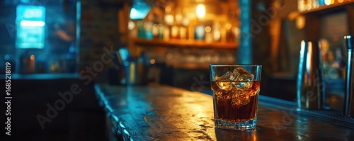 Luxury whiskey bar interior with warm lighting.
