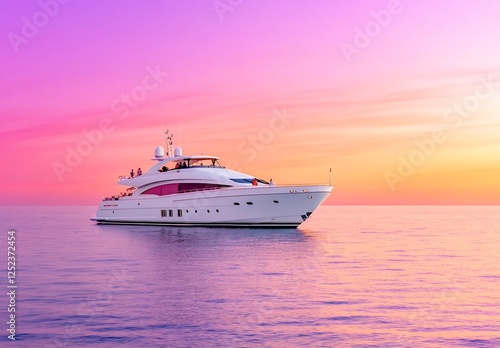 Luxury Yacht at Sunset on Calm Ocean Waters